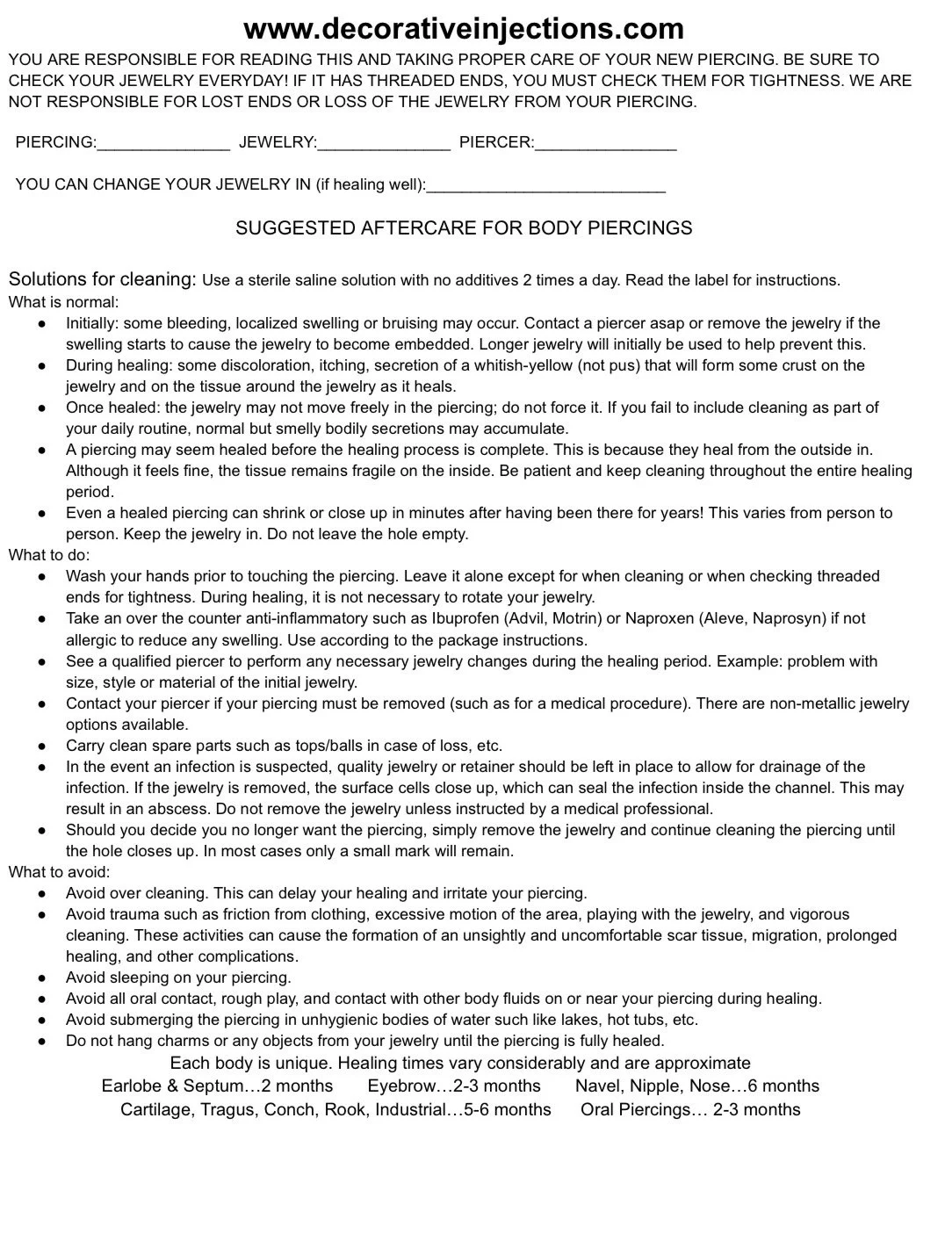 Piercing Prices/Age Requirements/Jewelry Options